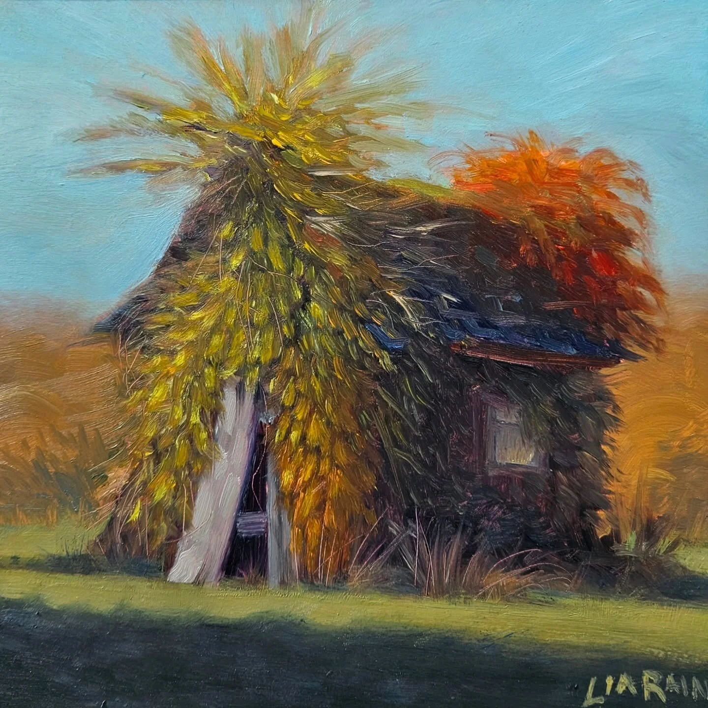 For many years Lia has been drawing and painting from life to bring rural charm and cherished close ones to her canvas. Having spent her formative years living and working on a farm, her love of the animals and the outdoors inspired her to hone the craft of plein air and animal portraits. Later she pursued printmaking for the meditative carving techniques and the boldness of black and white.